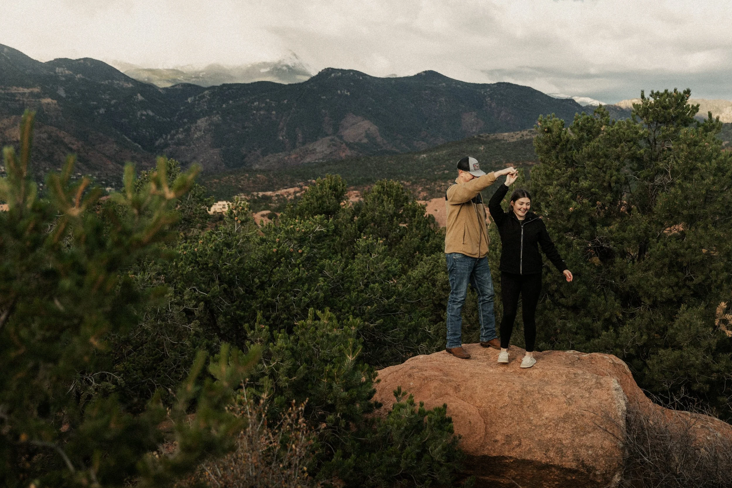 After the proposal, we then drove around Garden of the Gods to capture more engagement photos. At this point, the sun started peeking through the clouds and created the most beautiful glow. The park gave us so many beautiful backdrops for photos — it was the most perfect morning. Garden of the Gods is definitely one of the best engagement spots in Colorado Springs!